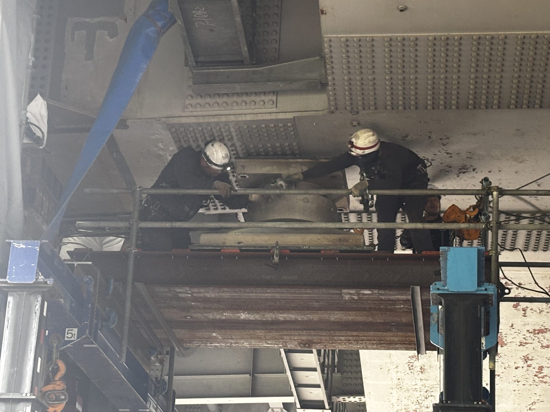 揚程機(リフト)と支保工(H型鋼)を併用した仮設物を組み上げ、撤去しました。